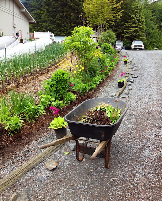 Tomorrow I plan to dig up some of the plants in that bed that I don't like and plant more plants that I do like. I'm able to have the net fence down while I work because I've fenced the ducks out of this particular half of the garden....